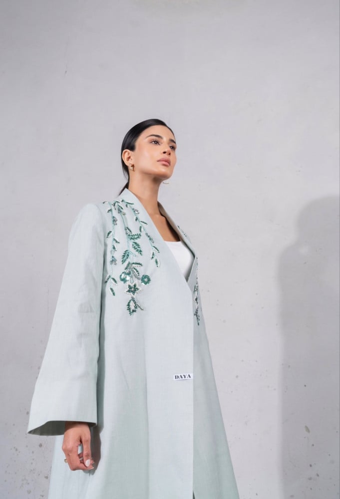 بليزر عباية تم تنفيذها ب اجود انواع اقمشة اللينن الطبيعي