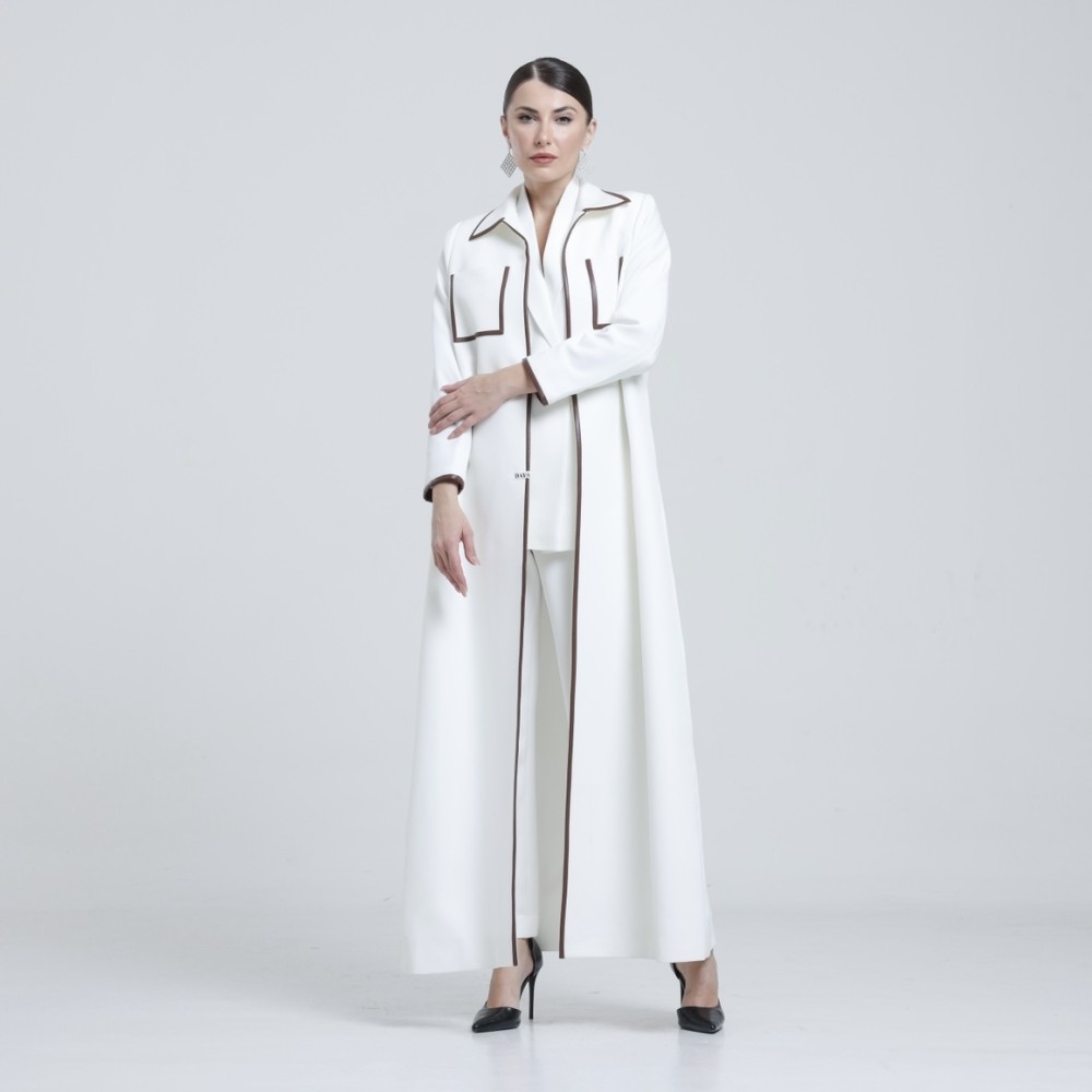 بليزر عباية تم تنفيذها ب اجود انواع اقمشة الكريب و مزينه بالجلد