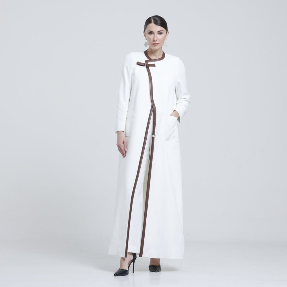 بليزر عباية تم تنفيذها ب اجود انواع اقمشة الكريب و مزينه بالجلد